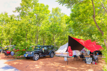 ※当キャンプ場のオートサイト全区画は、約80平方メートル以上で区切られております。